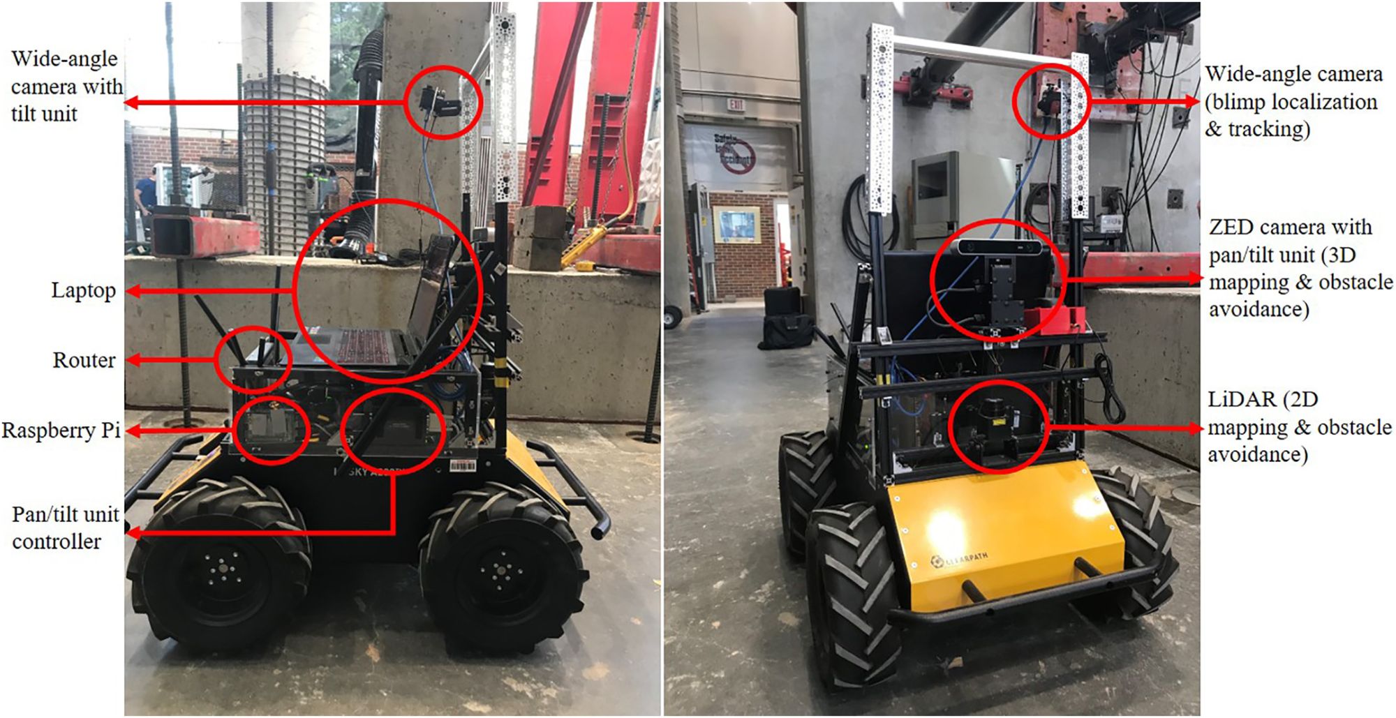 This project designs a UAV-UGV team that integrates two custom-built mobile robots. The UGV autonomously navigates through space, leveraging its sensors. The UAV acts as an external eye for the UGV, observing the scene from a vantage point that is inaccessible to the UGV. The relative pose of the UAV is estimated continuously, which allows it to maintain a fixed location that is relative to the UGV. (j5 and C4)